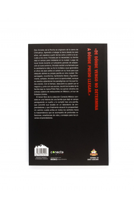 ARNOLDO DE LA ROCHA Y NAVARRETE (1957-) Originario del corazón de la sierra tarahumara, es uno de los socios fundadores de Pollo Feliz de México, además de fundador de Operadora De Alimentos Del Norte, Abastecedora Arni y Alimentaria Mexicana. Es egresado del programa de Alta Dirección de Empresas del ipade, donde su historia fue estudiada y reconocida como Caso ipade. Ha recibido cientos de reconocimientos de diversas instituciones privadas y públicas, entre los que destaca su entrada al Salón del Empresario en 2017, y el premio EY Entrepreneur of the Year Mexico 2021 en la categoría "Toda una vida". Ha sido nombrado "Visitante distinguido" e "Hijo predilecto" de más de treinta ciudades y "Socio honorario" de varias decenas de clubes rotarios a nivel nacional e internacional. Es autor de tres libros de relatos de la sierra: Tierra perdida, Caminos de tierra perdida y Amores de tierra perdida. También comparte su legado por medio de conferencias sobre temas como emprendimiento, trabajo en equipo, identidad mexicana y desarrollo personal
